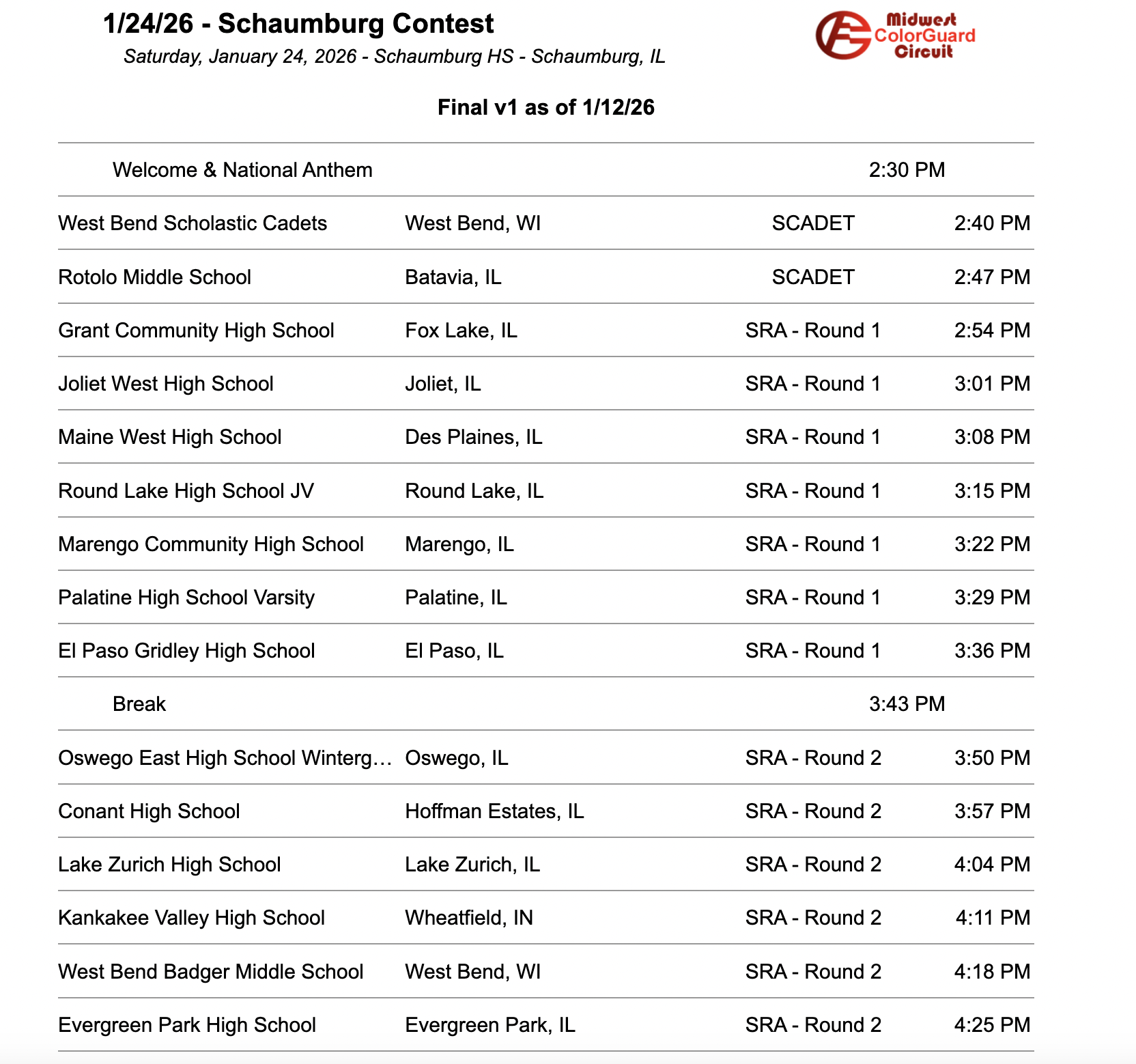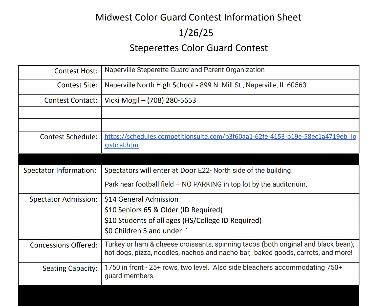 Here is the general information regarding the first two winter guard competitions of the year! Students will receive the performer itinerary from Ky.